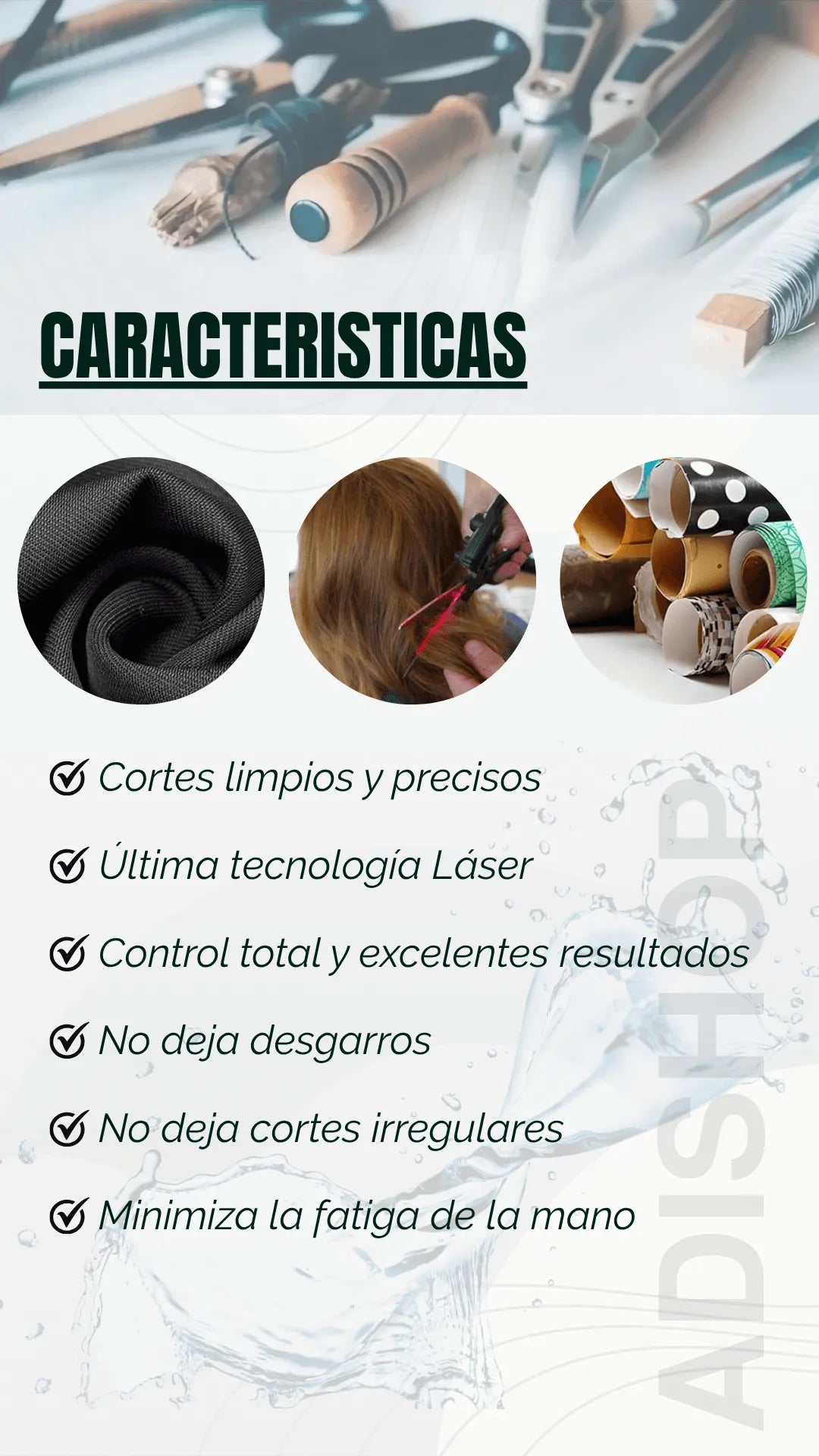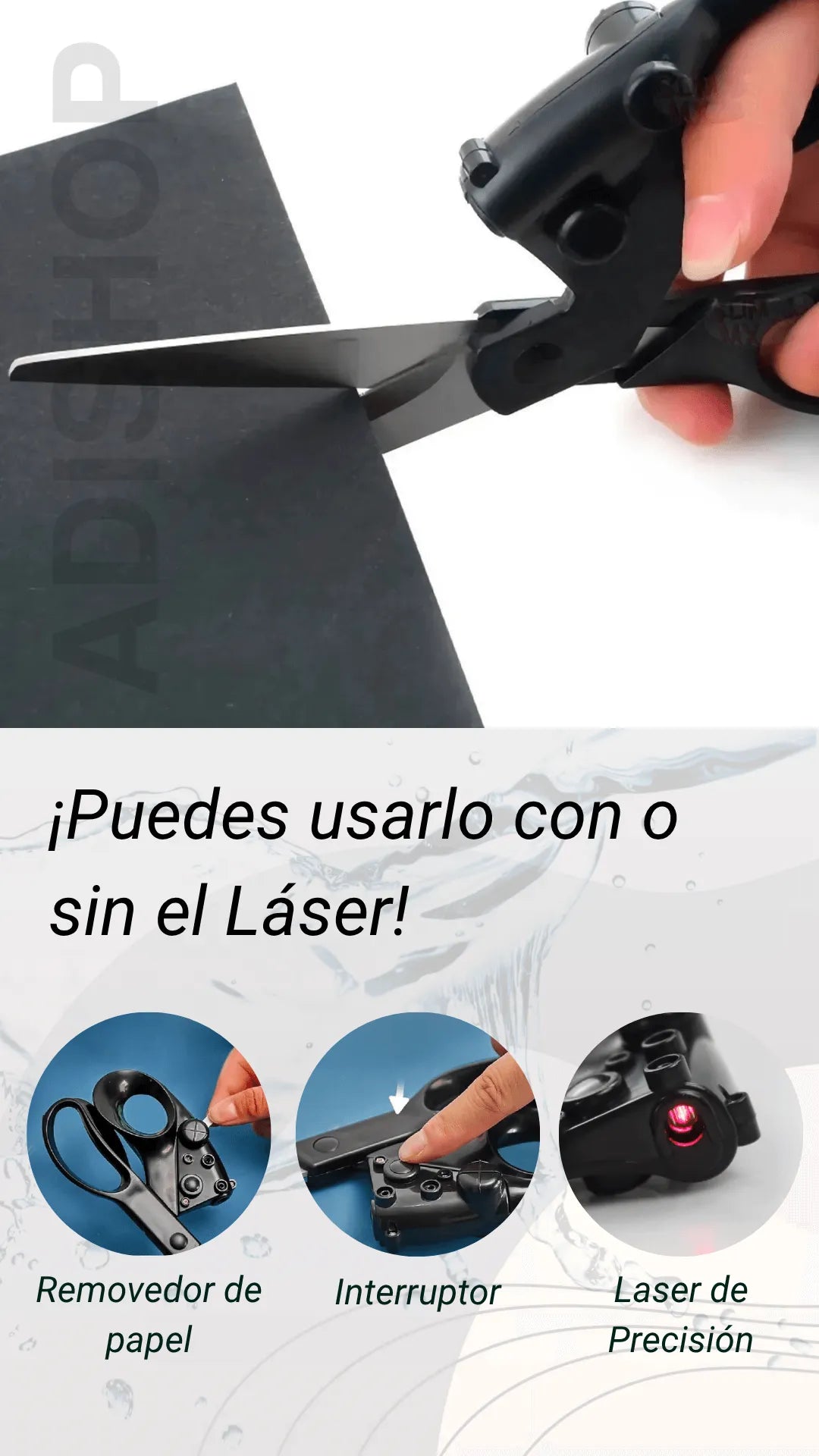 La diferencia clave es la precisión asistida. Las tijeras tradicionales, por más afiladas que sean, dependen únicamente de tu pulso. En cambio, nuestras tijeras con guía láser proyectan una línea recta como referencia visual que reduce el margen de error humano. Esto es especialmente útil para cortes largos, repetitivos o decorativos. Además, el diseño ligero y ergonómico reduce la fatiga, algo que muchas tijeras de gama alta no consideran.